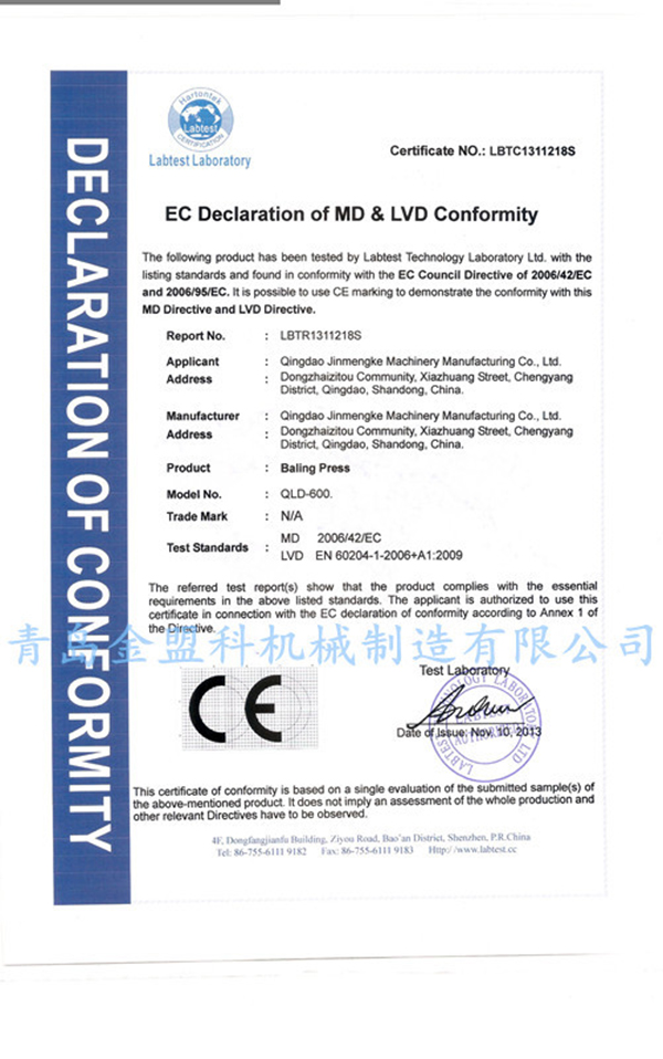 無紡布開松機(jī)資質(zhì)證書